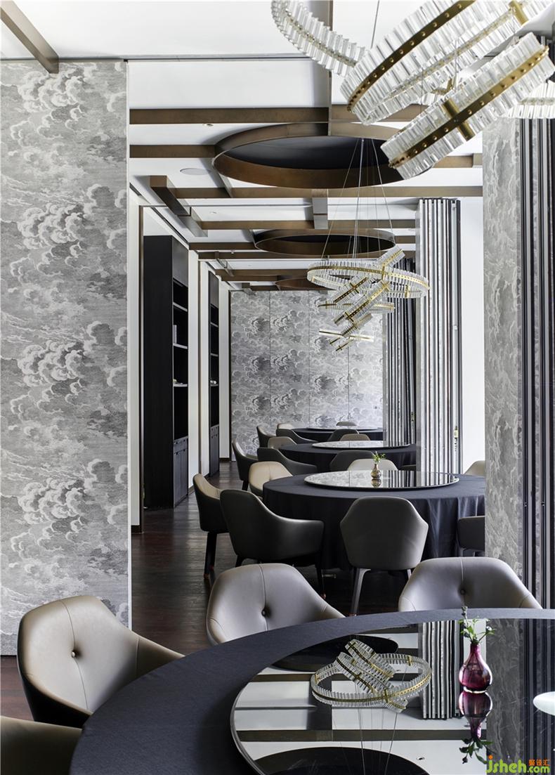 設(shè)計師用“抽象或具象”的符號植入進每個不同的包間,以期營造一種別具一格的現(xiàn)代東方意境。餐廳設(shè)計