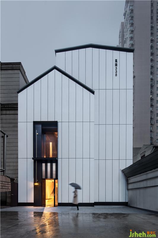 “我希望在老建筑中間,能產(chǎn)生一個(gè)當(dāng)代的盒子,作為新與舊的連接物?!痹垼℅ary)說。所以他將原建筑外立面的鐵皮由灰色刷成白色,并裝上黑色窗框;又把屋頂上升30公分,而后挑檐,成為傳統(tǒng)鬧市區(qū)內(nèi)的一處安靜現(xiàn)代的所在。