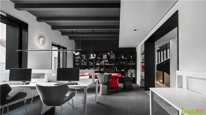二樓為GID員工辦公區(qū),整體空間主要色調(diào)為黑白灰, 局部同樣運(yùn)用了不同的顏色進(jìn)行碰撞,構(gòu)建別樣的東方氣韻。