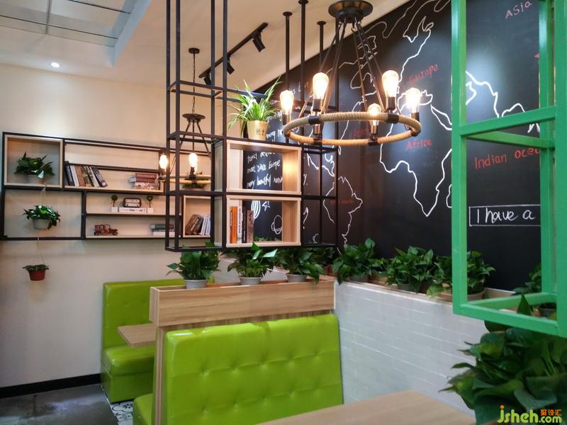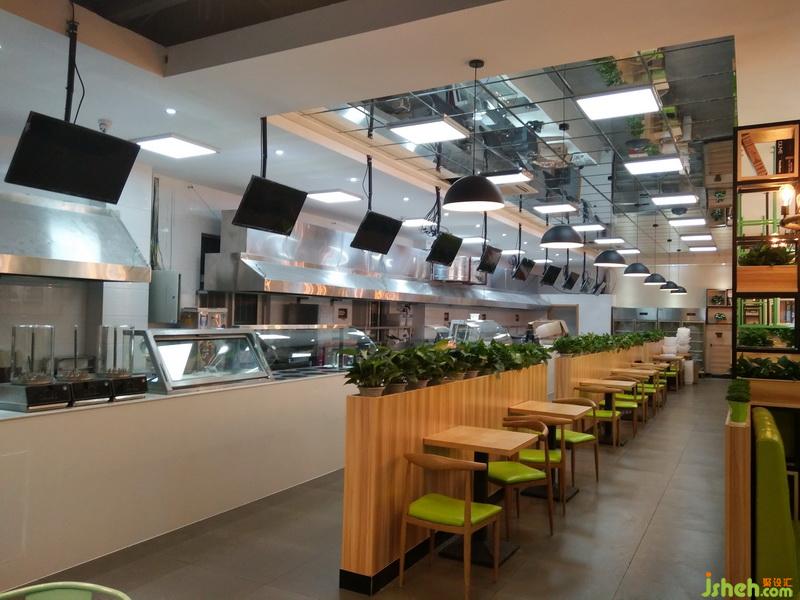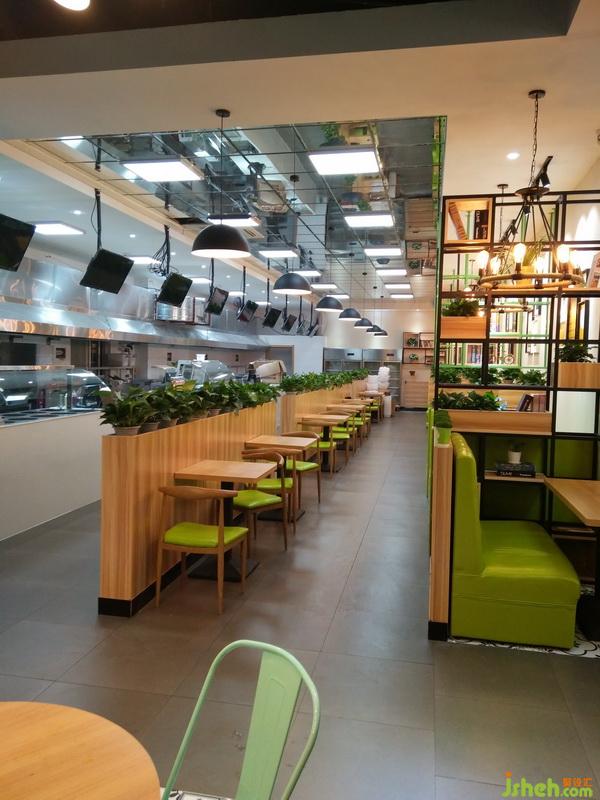 該美食城位于大學(xué)生活區(qū),因此整體風(fēng)格定位現(xiàn)代清新簡(jiǎn)約風(fēng)??臻g功能劃分有就餐區(qū)、明檔區(qū)以及儲(chǔ)物間。就餐區(qū)分四人散座區(qū)、兩人散座區(qū)、四人雅座區(qū)以及吧臺(tái)區(qū),滿足不同就餐需求。布局上采用“一字型”座位形式最大化利用空間。色彩以綠色為主色,烘托年輕、活力、綠意盎然的就餐氛圍。