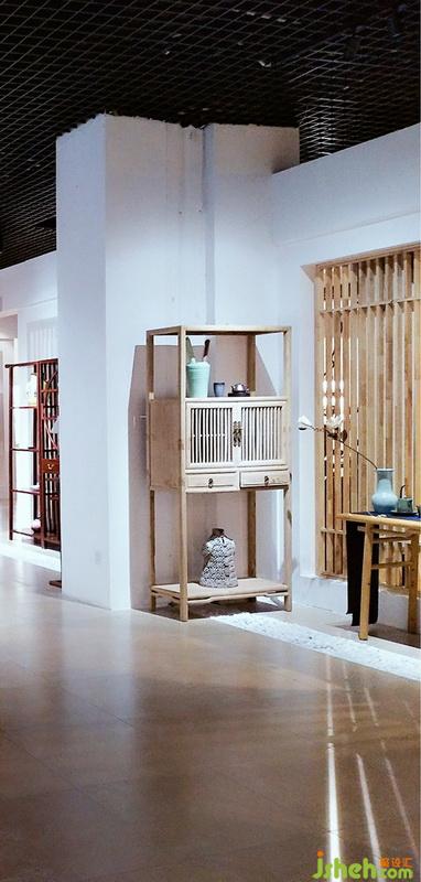 空間區(qū)域劃分為開敞式家具展示區(qū)、相對封閉的體驗式茶藝區(qū)和茶具展示區(qū),區(qū)域分割以鏤空隔斷為主,隔而不斷,相互連接,體現(xiàn)靜怡、謙和氣質(zhì)。白石子優(yōu)雅,木格柵樸素,古人云: “寧可食無肉、不可居無竹”,竹子配以禪意風(fēng)格裝飾畫、白墻,給人帶來一片安逸與禪意。
