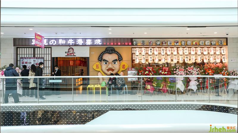 五道的和牛壽喜燒是一家開在商場內(nèi)的本土原創(chuàng)單店餐飲品牌,主營日本料理。本次改造,店主希望在原有基礎(chǔ)上,以較低的造價成本來打造全新的視覺效果和感官享受。既要彰顯濃郁的大和文化,又要滿足客戶“好吃好喝好拍照”的感官消費需求。因此,設(shè)計師在設(shè)計方案時因地制宜,充分利用現(xiàn)有的條件,追求風(fēng)格和氛圍的營造,以親民的手法,將網(wǎng)紅元素、東方禪意文化等完美結(jié)合,達(dá)到滿意的效果。餐廳設(shè)計