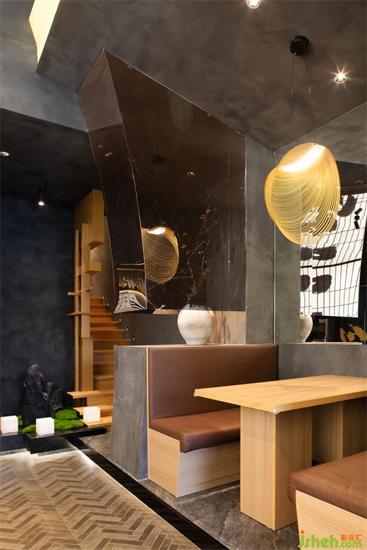 一樓北辰、靈澤、朝雲(yún)卡座依次而立,古人對(duì)于星星、雨水、云朵等萬(wàn)物的雅稱,將美好寓化于物,富有深意、又催人而上。名稱運(yùn)用,料理設(shè)計(jì)顯示獨(dú)到匠心之處。山際見(jiàn)來(lái)煙,竹中窺日落。