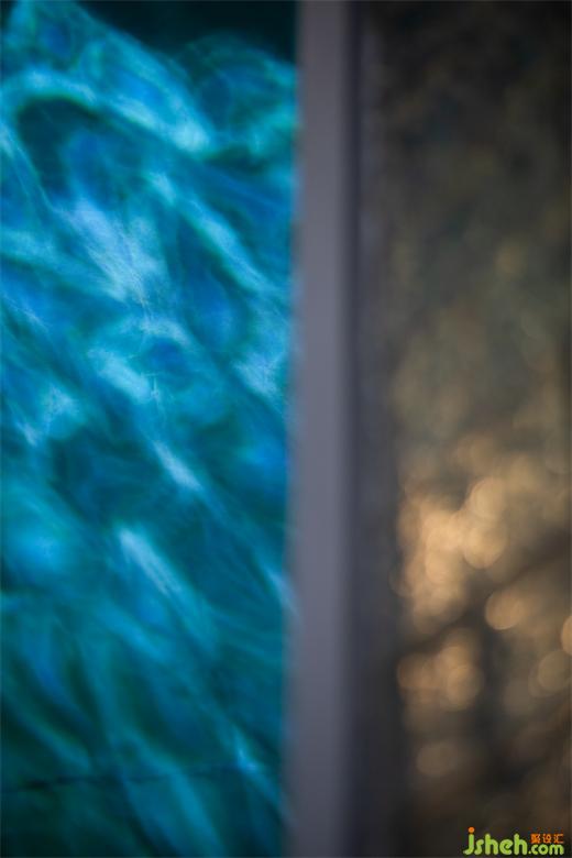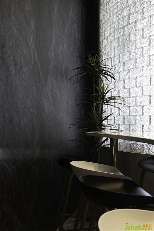 地面采用深淺兩色對比,通過弧形分割,就像是一片沙灘,在“帆布”造型之下,“沙灘”之上就餐,仿佛置身于海邊,米線店設(shè)計(jì)營造出讓人未到海邊,確勝過海邊的意境。同時頂面鏡面和石膏板同樣通過弧形的分割,鏡面似水面,“帆布”造型上點(diǎn)綴的水波紋燈光,配合墻面裸露的石紋帶來的結(jié)構(gòu)肌理,以及紅色的“珊瑚石”讓人又有一種置身于海底的感覺。