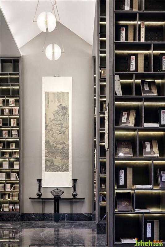 雄偉之氣在于追訪古韻。接待前廳縱深空間的盡頭是裝飾有汗青鎧甲的背景墻,既延續(xù)春秋戰(zhàn)國文化,又?jǐn)[脫青銅器的一味厚重,其上點綴山石造型,硬朗大氣中透露出現(xiàn)代主義的自然流暢。