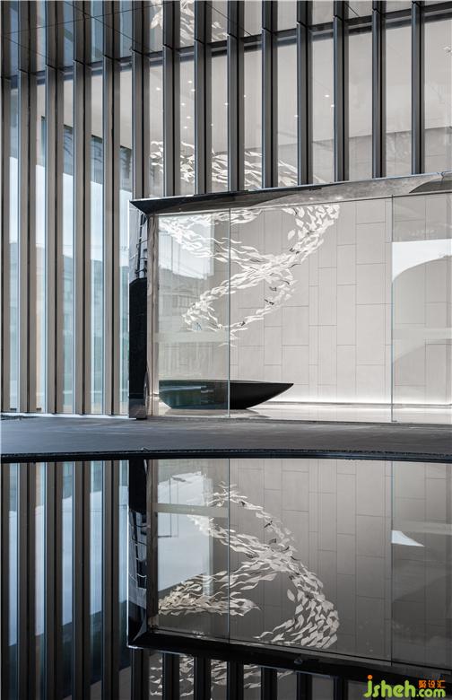 水為萬(wàn)物之源,光影的穿透下賦予了“魚群”生命力,進(jìn)而深入,流向浩瀚的自然之曲。