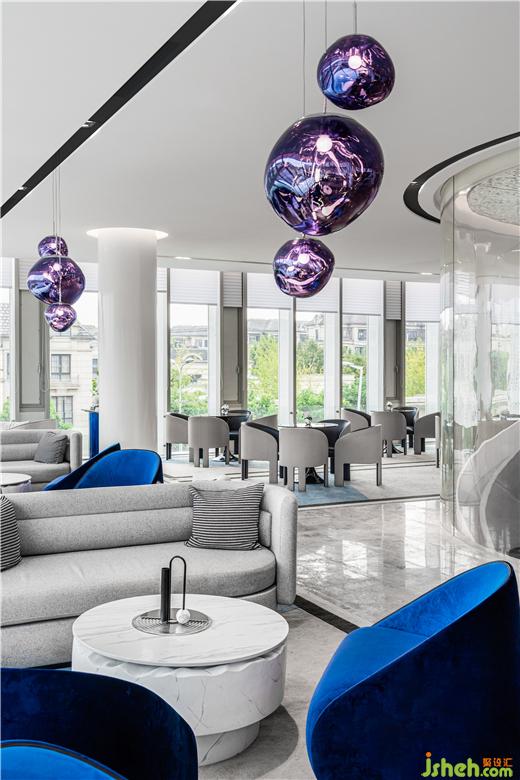 售樓處設(shè)計(jì)從上而下的藝術(shù)魚群裝置貫穿其中,使新老交匯,魚群裝置,輕盈流動(dòng),猶如置身海洋,讓藝術(shù)與人文對(duì)話,在萬(wàn)物的自然中,是傳統(tǒng)與現(xiàn)代相融,風(fēng)貌與未來(lái)的同在。