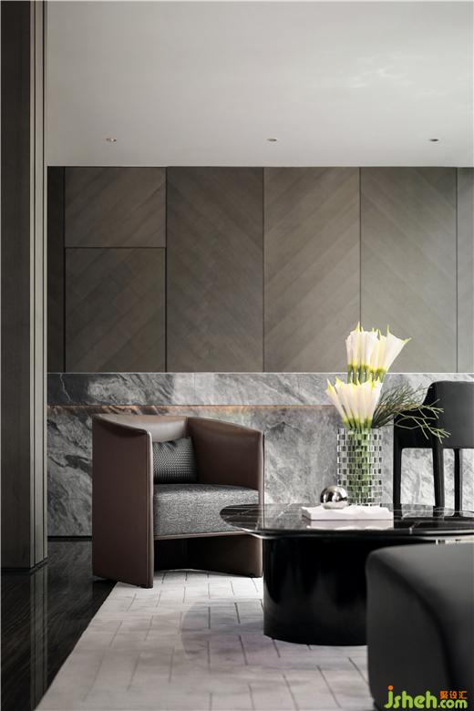 木飾面背景墻在空間高度上的延伸,具有穿透性和獨(dú)立性的立面,這些處理方式都令空間充滿著不同的視覺趣味。相互牽引,游觀與此,或行或坐,繁華炫目,思緒沉浸在字里行間,三兩而坐,藝術(shù)生活,追尋永恒之美。