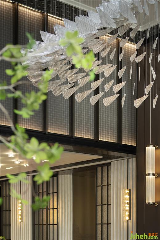 項(xiàng)目LOGO作深化演變,詮釋路勁地產(chǎn)的品牌文化,裝置由透明的藝術(shù)玻璃元素組成線性的紋理,展示中心設(shè)計(jì)通過(guò)不同的角度移動(dòng)時(shí),創(chuàng)造迷人的光模式。利落的線條帶來(lái)簡(jiǎn)約的視覺(jué)感讓空間立體純粹,感受到舒適奢華的酒店式空間。