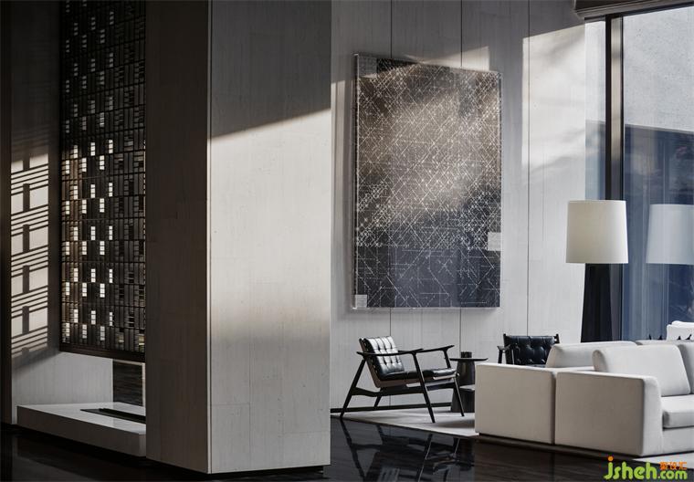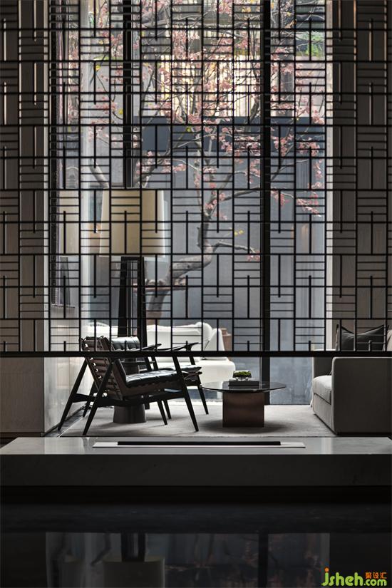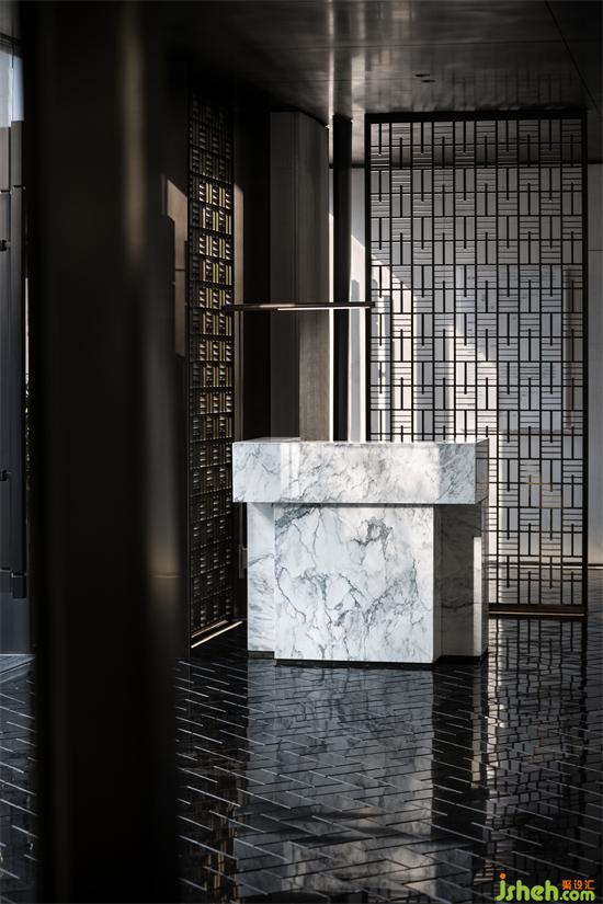 大理石地面紋理飽滿,燈光與地面陰影的轉(zhuǎn)變,自然與室內(nèi)相結(jié)合,沉浸在一方天地裡,微妙的裝飾,幾何與有機(jī)構(gòu)圖交相疊映,構(gòu)成獨(dú)舒適的洽談空間。