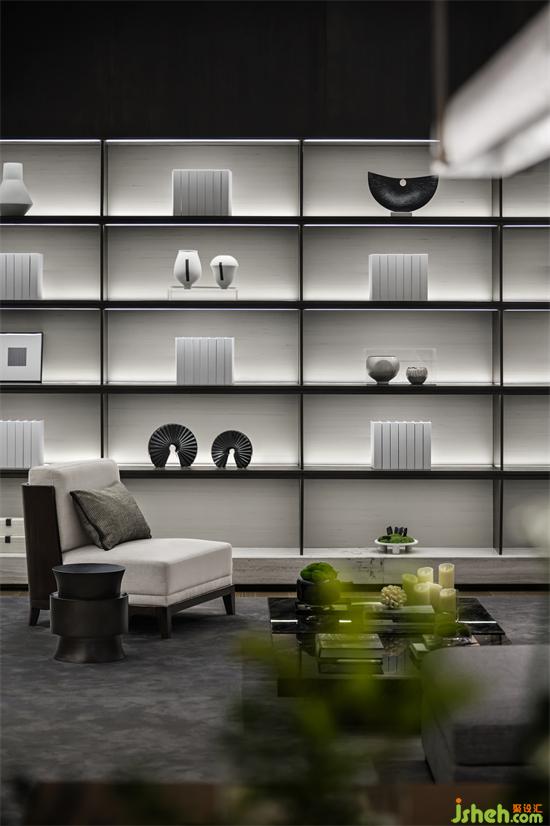 南京售樓中心設(shè)計(jì)展示架和藝術(shù)擺件配合燈光漫反射蘊(yùn)生出微妙氛圍,沙發(fā)和大理石質(zhì)感茶幾大氣簡(jiǎn)約,在此交談時(shí)感受美學(xué)帶來(lái)的沉浸感與空間的優(yōu)雅本質(zhì)。