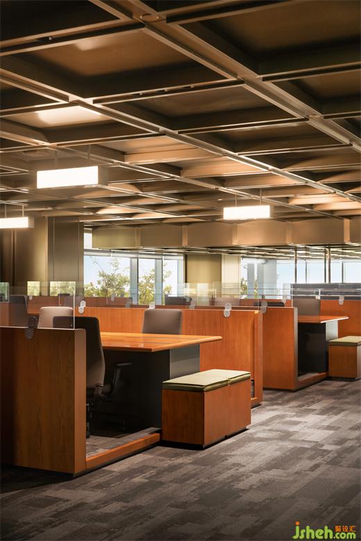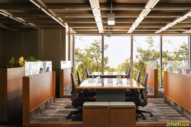 交易中心設(shè)計辦公區(qū)以現(xiàn)代化、高效能與人性化的設(shè)計為核心,充足的自然光通過大面積的窗戶進入室內(nèi),光線充斥著每一處細節(jié),自然也被引入之內(nèi),不僅減少了照明能耗,還營造出綠色向上的工作氛圍。