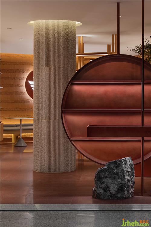 空間以具有80年歷史的大益茶品牌文化為基底,結(jié)合現(xiàn)代都市人的審美喜好和消費(fèi)習(xí)慣,重新定義空間的視覺風(fēng)格和功能體驗(yàn),空間整體設(shè)計(jì)為暗紅色的基調(diào),好似普洱茶茶湯的顏色,厚重且清透。在眾多零售店中鮮明且突出。