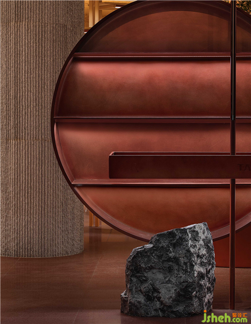 空間中大面積使用自然透氣的紅色泥土,配合細(xì)膩溫潤的紅銅,點(diǎn)綴天然樸質(zhì)的原木,徹底摒棄裝飾與華麗,呈現(xiàn)高度真實(shí)且單純的自然之美。
