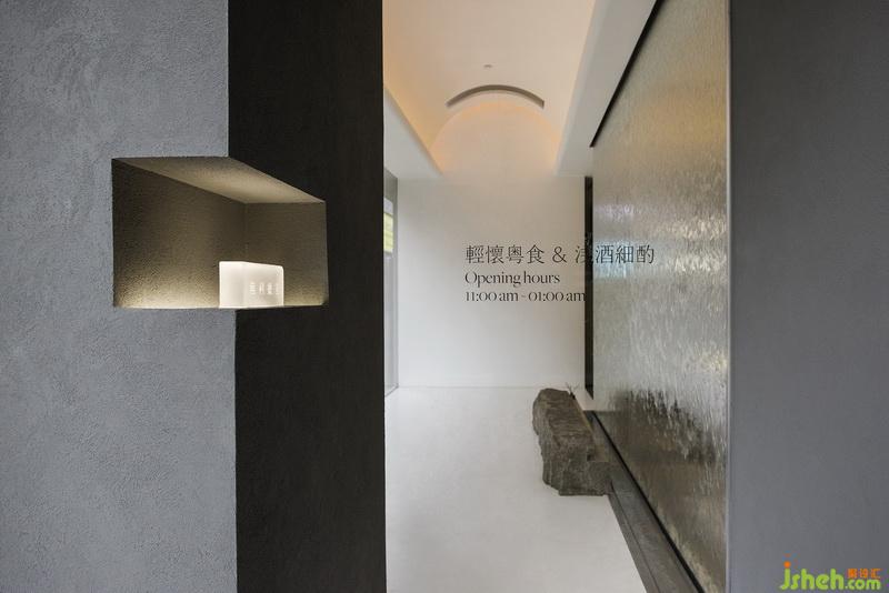 We created a glass water curtain at the entrance, which functioned as a space partition, the long natural stone and the flowing water reflects an integration of stillness and motion, as well as an interaction between trueness and falseness. In this way, the whole space has a kind of flexible and vibrant sense. The dome and the water curtain constitute a unique "water curtain cave" landscape, which also become the core elements and memory points of the whole project.