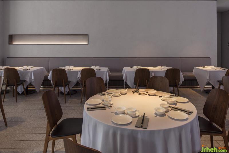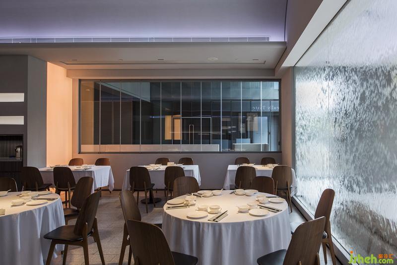 我們?cè)谌肟谔帬I(yíng)造了一面玻璃水幕作為空間隔斷,長(zhǎng)形的自然原石與潺潺流水動(dòng)靜結(jié)合,虛實(shí)相生。讓整個(gè)空間增添了幾分靈性與生機(jī),餐廳設(shè)計(jì)拱頂與水幕構(gòu)成獨(dú)特的“水簾洞”景觀,也成為整個(gè)項(xiàng)目的核心元素和記憶點(diǎn)。