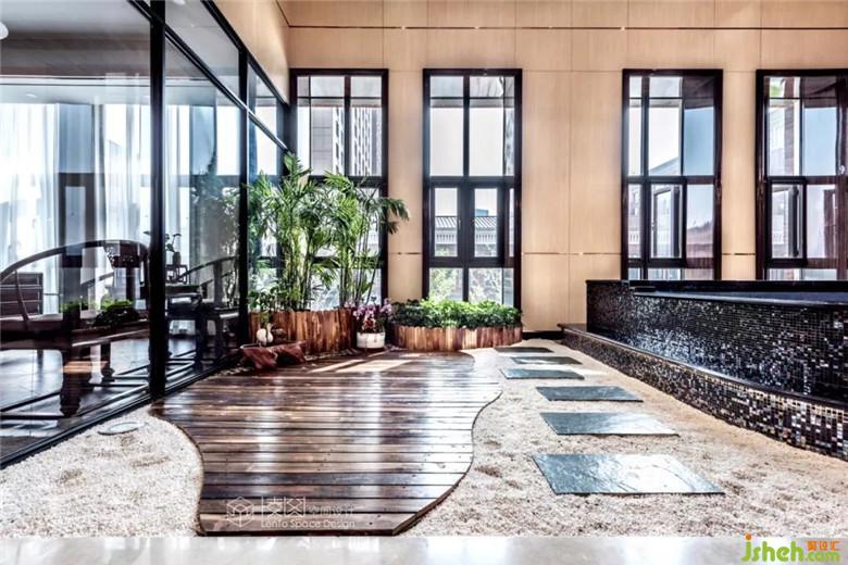 小橋流水石階,群魚相戲池塘,寄情于景,隱于山林,藏于詩中,東方禪意元素的融入,賦予了這一處共享景觀區(qū)更為立體的神韻,給人以渾然天成的自然之美。