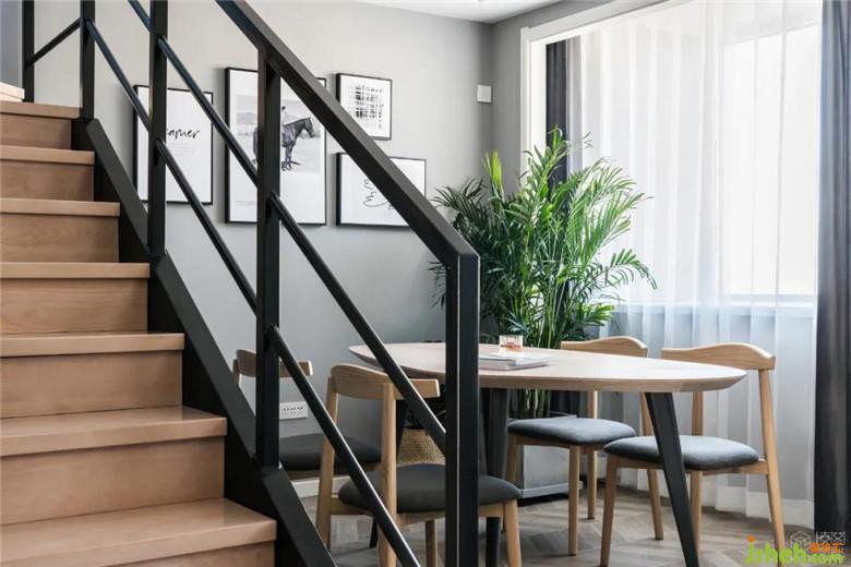 裝修公司設(shè)計師經(jīng)過對原始戶型的改造和重新梳理,將西廚、餐廳及樓梯間三位一體地組合成一個多功能的敞開空間。這一重組,使得功能利用更加高效合理,并有效地增加了入戶后的空間體量感。