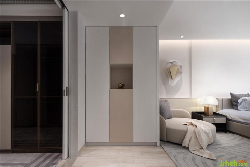 主人房繼續(xù)沿用了女主人偏好的簡約淡雅色調(diào),并與過道形成了風(fēng)格上的延伸關(guān)系。