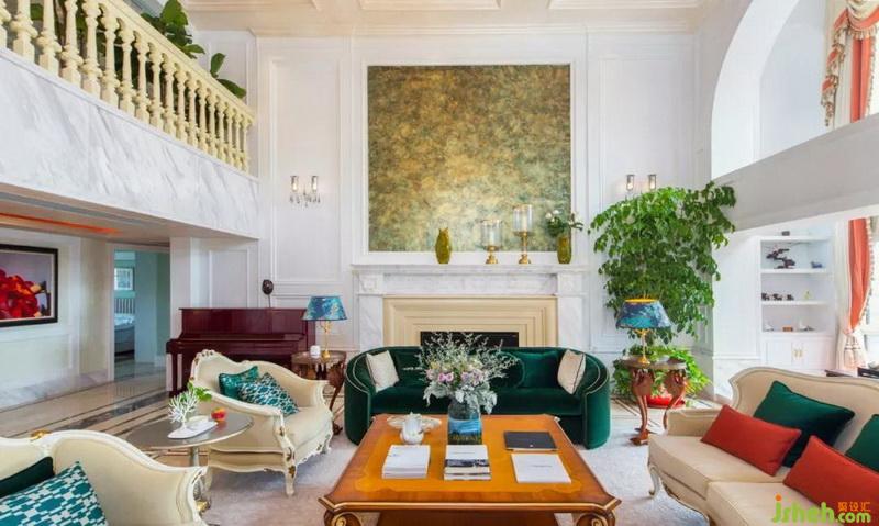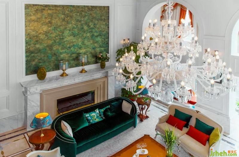 主要材料:爵士白大理石、白色飾面板、實(shí)木地板、大理石拼花、瓦帕茵特(Valpaint)藝術(shù)漆、愛馬仕墻布、SAINT LOUIS水晶燈、石匠花者