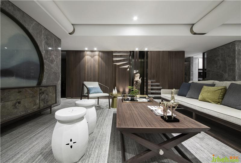 而客廳電視墻,則蘊含著對現(xiàn)代生活的思考:電視不應(yīng)該是客廳的視覺中心,它是附屬品而不是必需品??蛷d最重要的功能是會客而不是看電視,所以電視被“畫”隱藏起來了。需要的時候,遙控打開“畫”,電視就出現(xiàn)了;不需要的時候,眼前是一幅很有意境的山水裝飾畫。