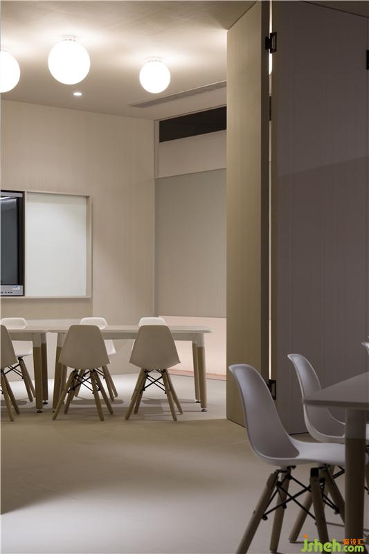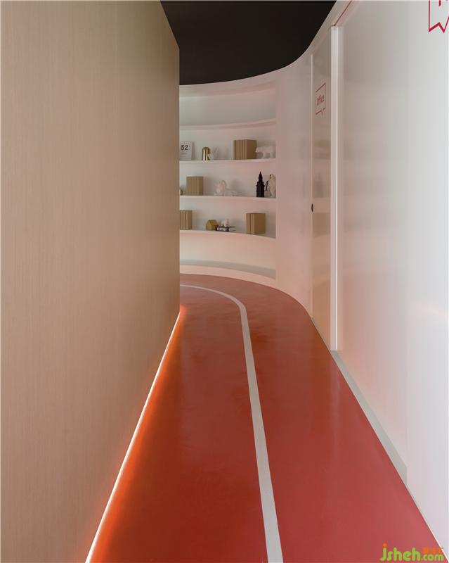 為了區(qū)隔教室和跑道兩個空間的界限,我們抬高了教室的地面高度,并在底部做了一條燈條,z作為臺階和跑道的安全指引燈,同時也增強了空間的層次感。裝修設(shè)計