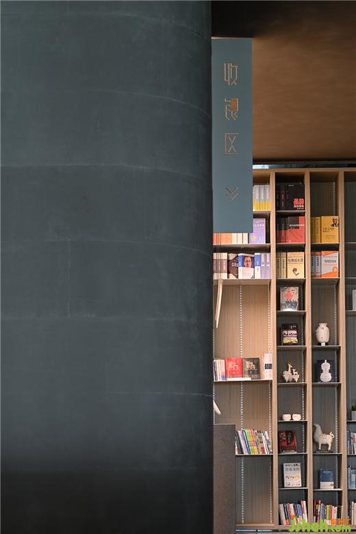 機場館設(shè)計相較于傳統(tǒng)書店的商業(yè)性,“母親的房子圖書館 · 機場館”的收銀區(qū)被特意設(shè)置在后區(qū)角落一個內(nèi)凹的“負空間”,保留基本功能的同時不過多地強調(diào)與凸顯,弱化整體的商業(yè)屬性,讓整個空間給人帶來更多的自在與閑適。