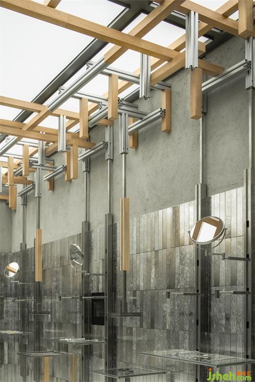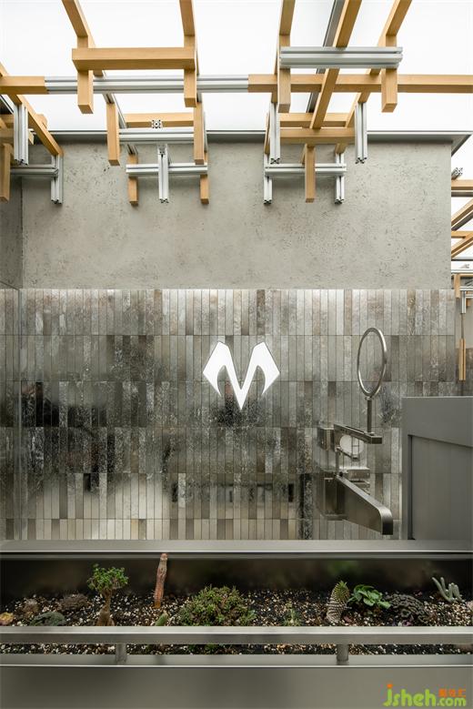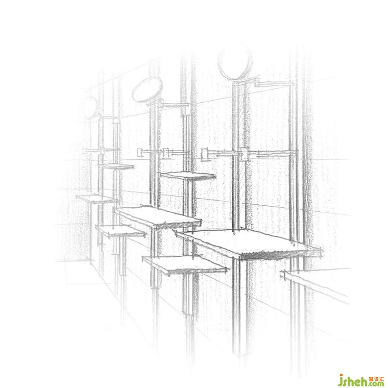 使空間因天花頂部陣列感的存在而更具辨識屬性,承上啟下,進一步的完成了設(shè)計概念的傳遞與深層表達。