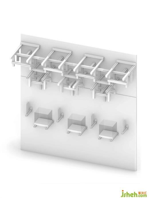 在此“墻面系統(tǒng)”之下,每一個托盤、柜體乃至射燈,展廳設(shè)計均可根據(jù)實際產(chǎn)品的尺寸大小與陳列需求、視覺重點等因素,完成靈活移動、組合與拆卸。