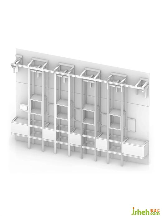 同時,在滿足空間未來長續(xù)性使用的前提下,每一立面結(jié)合品牌現(xiàn)有產(chǎn)品線,通過托盤區(qū)域、柜體區(qū)域的組合設(shè)置,最大程度的滿足了不同產(chǎn)品展示與陳列的需求。