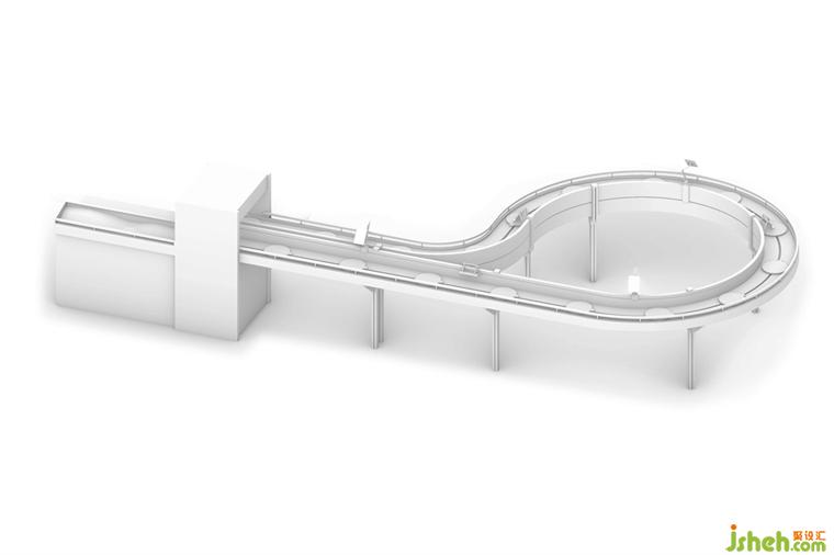 同時,這一延續(xù)工業(yè)作業(yè)中「傳送」的流程,回歸到實際消費環(huán)節(jié)時,也能將收銀區(qū)作為“打包”的最后一步,展廳設(shè)計以此完成空間收銀功能的嵌入。