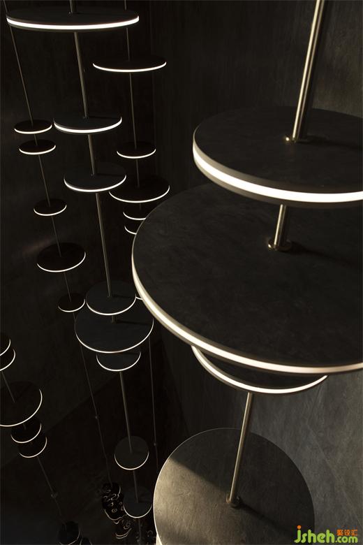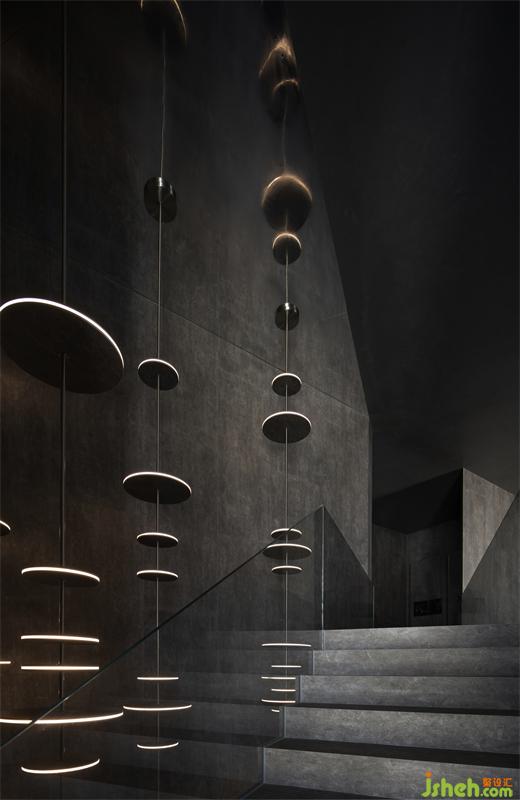 建筑內(nèi)構(gòu)、裝置藝術(shù)、光影美學(xué)等手法,皆被納入空間的表達(dá),讓空間跳脫出形式本身的靜態(tài)桎梏,人隨光行,由視覺牽引著行走,形成了空間動(dòng)線上的延伸感。