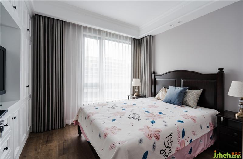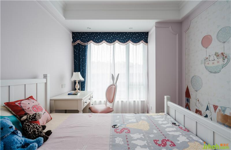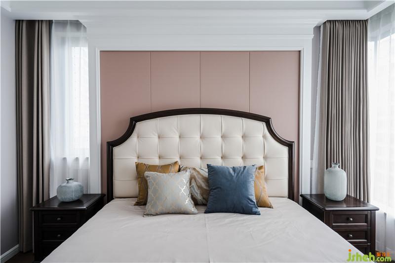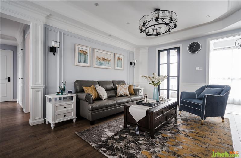 本案整個(gè)空間以美式風(fēng)格為整體鋪墊,客廳和臥室分別用藍(lán)色和粉色作為主色調(diào),純凈的藍(lán)色在客廳中主導(dǎo)了一種紳士味的穩(wěn)重色彩,暗調(diào)的粉色則在臥室里主導(dǎo)了一種淑女派嫻靜的氣質(zhì)。設(shè)計(jì)師在空間改造上調(diào)整了廚房的格局,采用不規(guī)則幾何形擴(kuò)大了廚房的空間使用面積,視覺(jué)上又增加了客餐廳的空間。室內(nèi)設(shè)計(jì)師