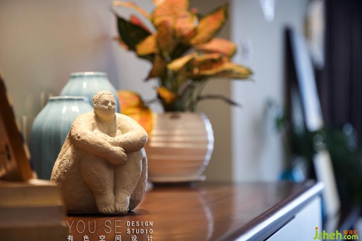 門廳的空間似乎并不大,一步就踏進了客廳,但鞋柜上自上而下的燈光,洋洋灑灑在簡單的裝飾品上,就凸顯了主人獨到的品味。