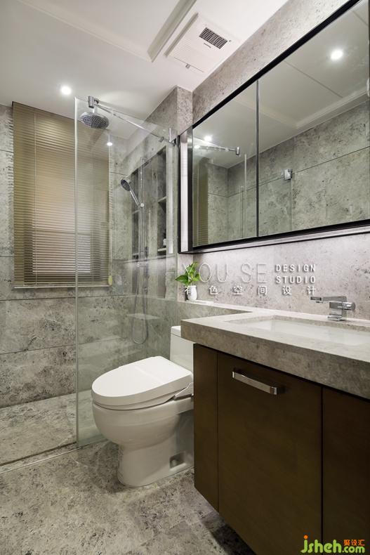 衛(wèi)浴采用簡潔的大理石材質(zhì),配合燈光層次,簡單協(xié)調(diào),干凈得一絲不茍。