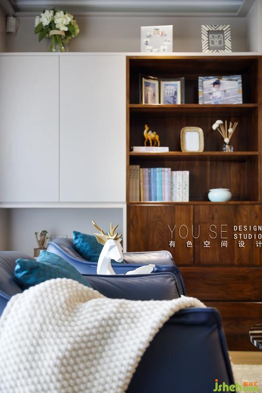 藍白色調(diào)的家具,藍白色的畫,白色的鹿形紙巾盒,仿佛就置身于天空的色彩里