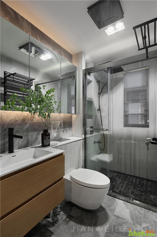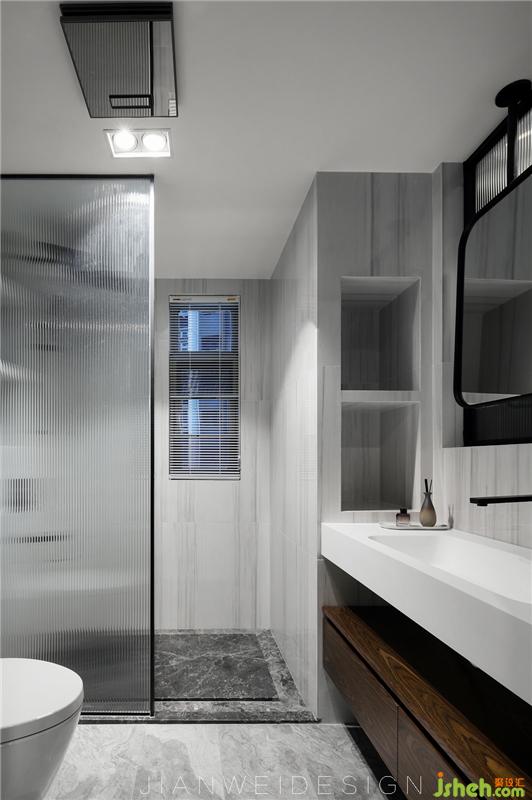 寬敞的主衛(wèi)實用面積,使得在淋浴區(qū)做壁龕成為一個好的選擇,創(chuàng)造出更加簡潔實用的空間,鏡柜打后通,下部暗藏燈帶,打開就是超五星的柔光和暖光,能帶來更高的使用品質(zhì)感,馬桶懸空,水箱和臺盆齊平,凸顯一體感。簡約的黑白灰的大理石空間層次分明,用氤氳山水中國畫的表述來形容也毫不為過。