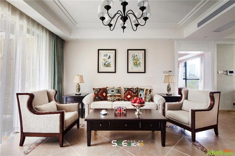 客廳是最考驗(yàn)設(shè)計(jì)師根據(jù)整體設(shè)計(jì)風(fēng)格對硬裝和軟裝的“輕重”進(jìn)行拿捏的功能區(qū)域。簡約純粹的“打底技巧”顯得尤為重要。遵循簡約美式一貫的大氣風(fēng)格,客廳選用目所能及的大件舒適沙發(fā)、落落大方的實(shí)木茶幾、素雅精致的美式吊燈,沒有任何反復(fù)的空間布局,每一處都格外的干凈利落,溫馨自如。