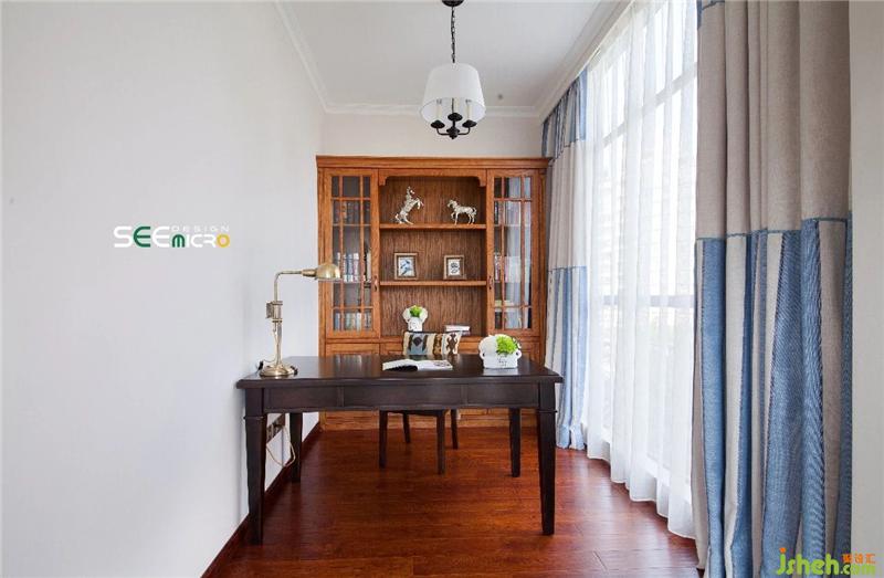 一桌、一椅、一卷書,待一人入境,便是書香。整個(gè)書房簡單利落,拉開素雅的落地窗簾便是一整面的光源。與其他功能區(qū)域不同的是,書房特地選用了頗有禪意的木質(zhì)地板,與靠墻而立的書柜互相呼應(yīng),而簡約的深色書桌則與白色墻面、窗簾與吊燈燈罩形成對比。整體空間一目了然,合上窗簾,便是主人獨(dú)一份的靜思一隅。裝修設(shè)計(jì)