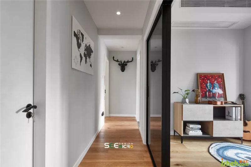 多功能房作為“一室多用”更要體現(xiàn)出其多用途;為了實(shí)現(xiàn)大空間里互動的連通性,采用玻璃推拉門,沒有大幅度的造價增加,但增強(qiáng)了玄關(guān)與房間的采光補(bǔ)充,紅色小沙發(fā)詮釋了婚房的溫馨與爛漫。裝修設(shè)計