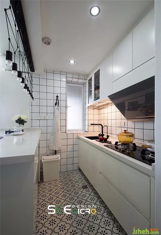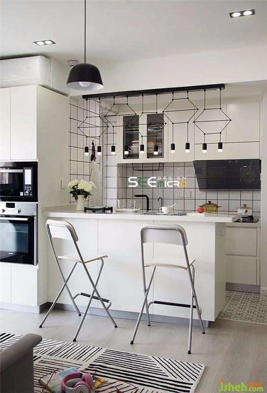 廚房設計得干凈利落,打掉墻體以后開放式吧臺不僅變身餐廳,還成為小廚房的大大操作臺,多功能導向更實用。
