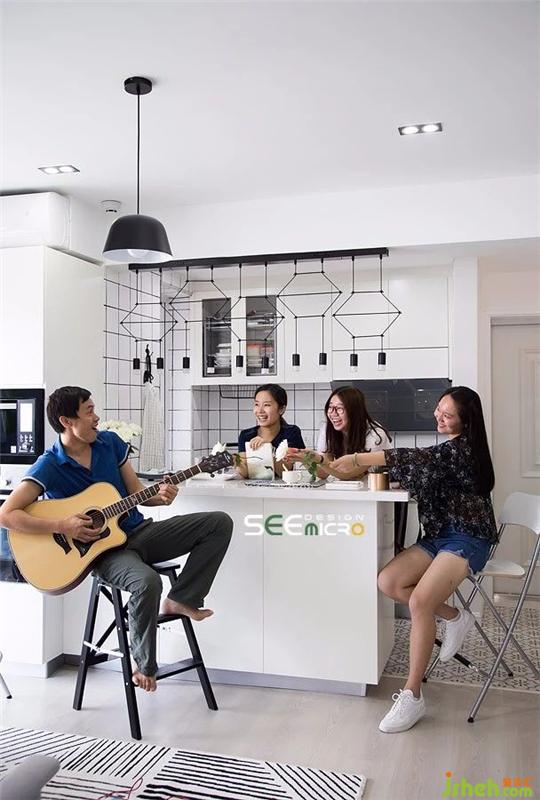 這里既是廚房又是餐廳,多擺上幾張高腳凳還能成為一群朋友聚會談天說地、漫談青春的好地方。