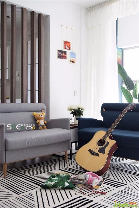 通透大氣的木柵欄,舒適柔軟的沙發(fā),席地而坐的彈唱,微微綻放的白玫瑰——構成了文藝小情侶宅家的日常,一屋,兩人,三餐,四季。裝修設計