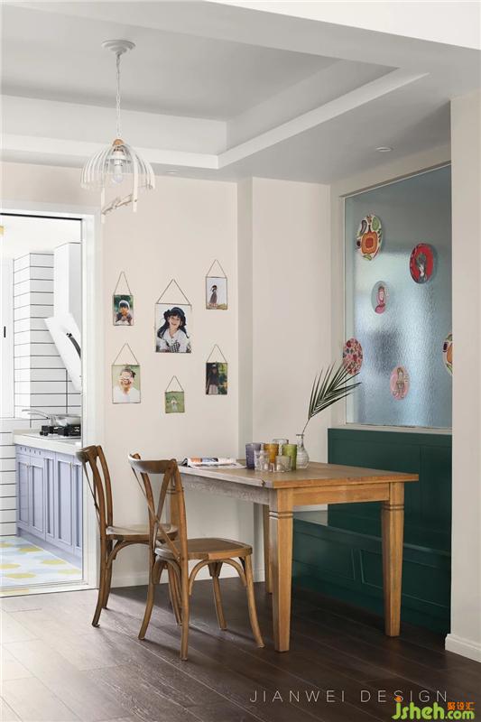 餐廳設(shè)計卡座,讓空間實用又文藝,合理運用自然光,讓客餐廳與廚房保持互動與通透。裝修設(shè)計
