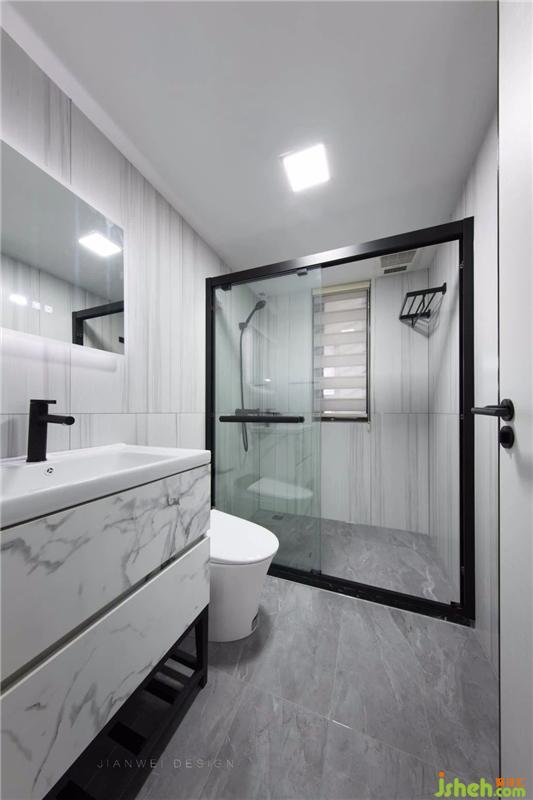 衛(wèi)生間使用了大理石紋理元素,營(yíng)造出極簡(jiǎn)、典雅的氛圍。豎紋大尺寸墻面磚讓衛(wèi)浴空間更挺拔,智能鏡柜和智能馬桶給生活帶來(lái)便利。裝修設(shè)計(jì)