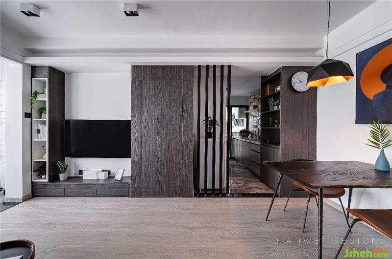 取消了入戶(hù)玄關(guān),化繁為簡(jiǎn)。將兩側(cè)過(guò)于厚重的墻體打薄,擴(kuò)展了原有的空間。