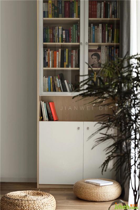沙發(fā)旁特意設(shè)計(jì)了書架,容量大大的,也方便拿取。