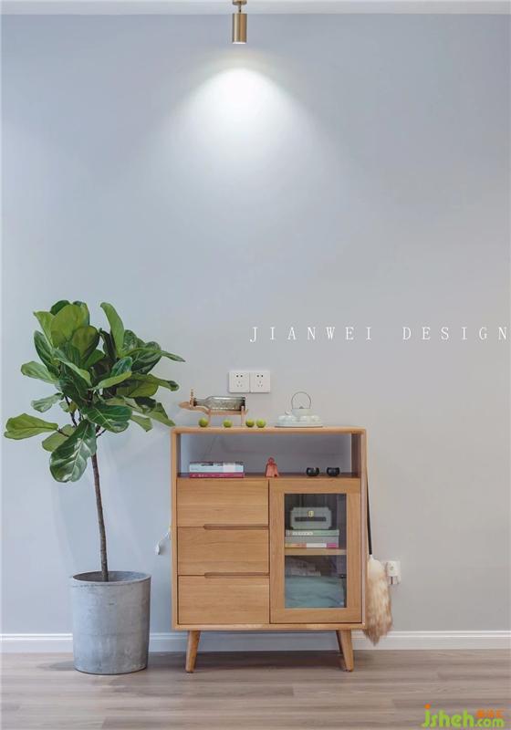 餐區(qū)和起居室的中間,擺上最?lèi)?ài)的琴葉榕,配合木作斗柜,打造出十足的“日劇小清新”風(fēng)格。臺(tái)面擺上主人家最心水的茶具,意在讓屋主每每看到就忍不住為自己泡上一壺,小酌兩杯,放松下來(lái)。裝修設(shè)計(jì)