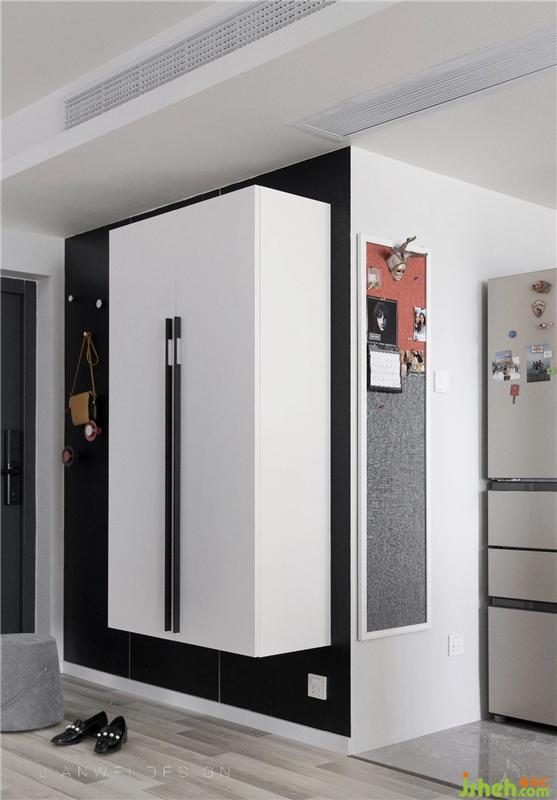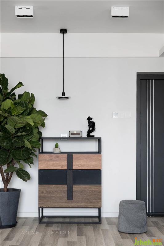 去掉多余的玄關(guān)處理,用最基本的表現(xiàn)手法來追求最深邃的部分。鞋柜做成懸浮式的造型鞋柜,滿足收納的同時(shí)讓整面墻更有科技感。裝修設(shè)計(jì)