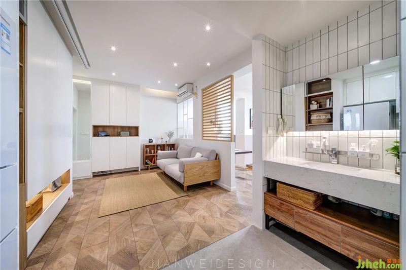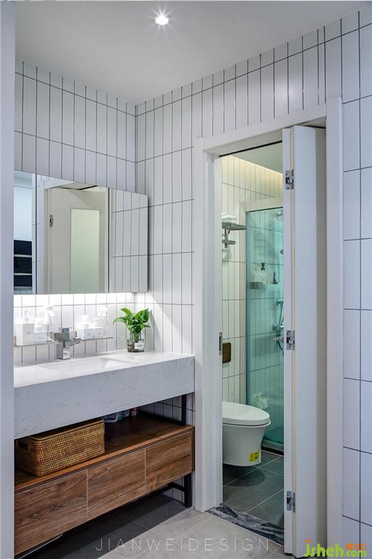 采用玻璃隔斷,干濕分區(qū),目的是讓空間和采光更加通透和明亮
